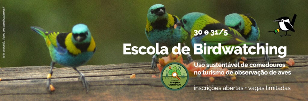 Em maio, o Legado das Águas recebe mais uma edição do nosso Programa de Turismo Científico, desta vez com a Escola de Birdwatching: Uso sustentável de comedouros no turismo de observação de aves, conduzida pelo ornitólogo Eduardo Roberto Alexandrino, idealizador do projeto “Eu vi uma ave usando pulseiras?!”.